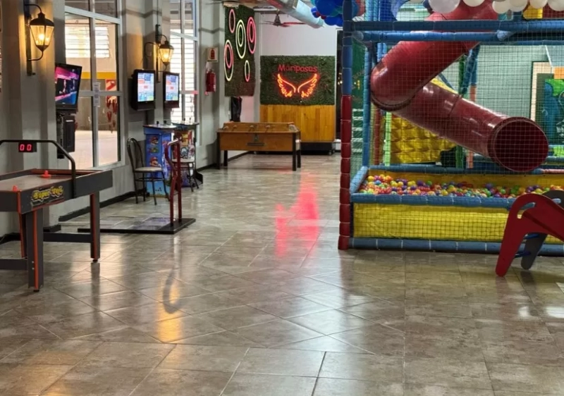 Nuestro salón cuenta con un gran lugar de juegos equipado con: pelotero y laberinto, maquinas de video juegos, teatro de titeres, espacio para los mas chicos con casitas, pista de baile, cancha de fútbol, estacionamiento privado , inflable, comedor con capacidad para 60 adultos, grupo electrógeno, servicio de comida y bebida para los chicos, coordinadoras , piñata/bolsitas .
